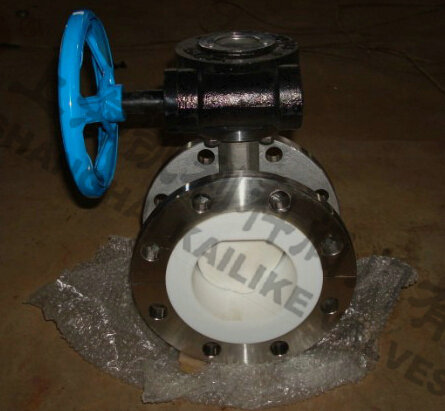 D341F46法兰衬氟塑料蝶阀广泛用于防腐管道系统上。主要用以实现阀门的开启、关闭与调节。全衬聚四氟乙烯(F4)、聚三氟氯乙烯(F3)和聚全氟乙丙烯(F46)氟塑料衬里阀,具有耐腐蚀、无泄漏、寿命长等优点。 适用于浓硫酸、盐酸、硝酸、氢氟酸、王水、各种有机酸、强酸、氧化性介质或高温烯硫酸、高温浓醋酸、酸碱交替及多种有机溶剂和其它强腐蚀性介质。