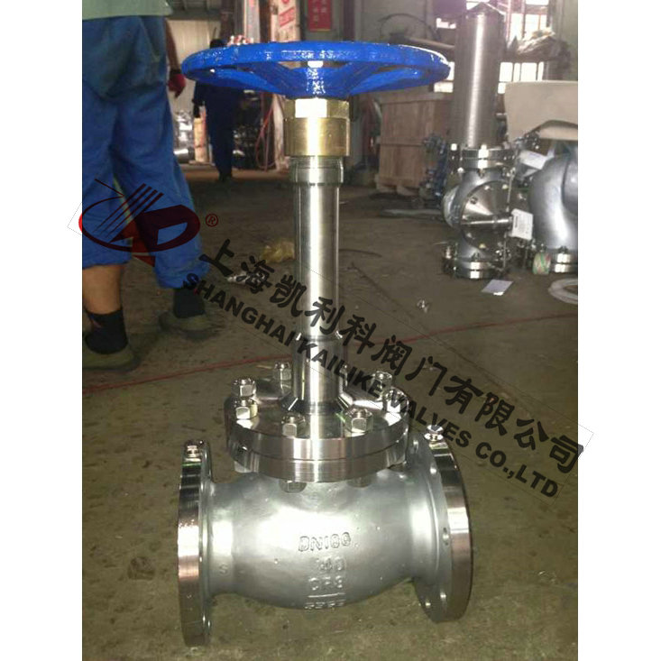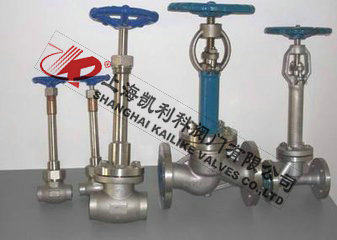 DJ61Y低温长杆截止阀有二种阀盖设计形式。第一种是螺栓式阀盖,按这种设计形式设计的阀门,其阀体与阀盖用螺栓螺母连接,缠绕式垫片 (31 6夹柔性石墨制造)密封。客户有特殊要求时也可采用金属环连接。第二种设计形式是焊接式阀盖,按这种设计形式的阀门,其阀体与阀盖用螺纹连接,全焊密封。客户有特殊要求时也可采用全焊逶连接。闸闸、截止阀、球阀都可设计成低温阀。为了能在-196℃(320oF)的低温下使用,一般将阀门设计成加长式阀盖。