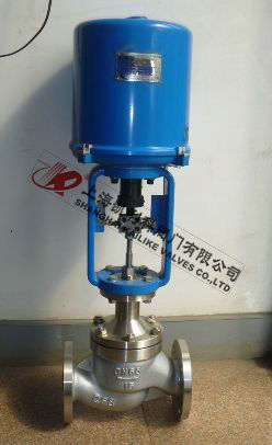 2、ZDLM防爆调节阀是由PSL系列和3810L系列智能型电子式电动执行器通过支架与单座、套筒调节阀连接在一起所 组成。当输入端无信号时,执行器稳定在预选的零位,调节阀处于全开或全闭的位置,执行器的输出轴通过开合螺 母与调节阀的阀杆相连。当输入端有信号时输出轴即通过输入信号按一定比例处在一定的位置,调节阀即处于所需开度,从而达到了调节和控制的目的。防爆调节阀分为电开式和电闭式两种。通过选择电子式电动执行器的正、反 作用开关来实现电开式和电闭式调节。