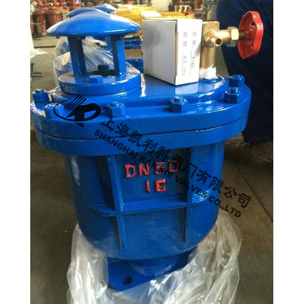 当管内开始注水时,塞头停留在开启位置,进行大量排气,当空气排完时,阀内积水浮球被浮起,传动塞头至关闭位置,停止大量排气;当管内水正常输送时,如有少量空气聚集在阀内到相当程度,阀内水位下降,浮球随之下降,此时空气则由小孔排出。当抽水机停止,管内水流空时,或遇管内产生负压时,此时塞头开启,吸入空气确保管线安全。