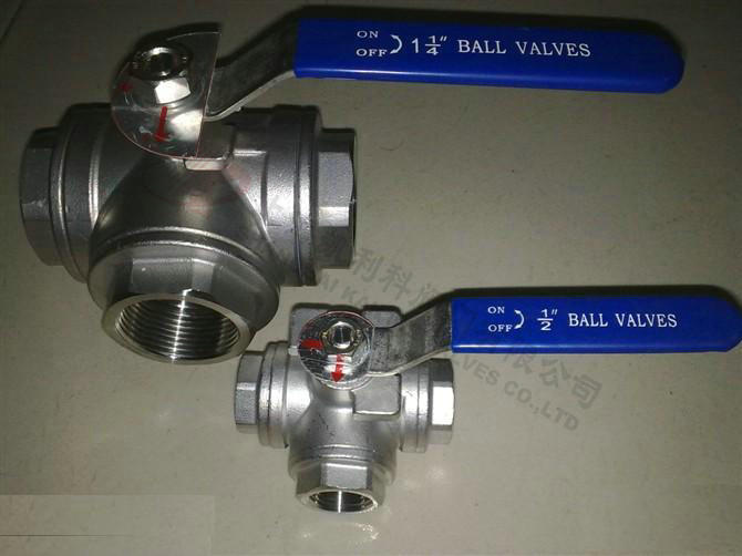 Q44F/Q45F不锈钢三通球阀有T型和L型。T型能使三条正交的管道相互联通和切断第三条通道,起分流、合流作用。L型只能连接相互正交的两条管道,不能同时保持第三条管道的相互连通,只起分配作用。