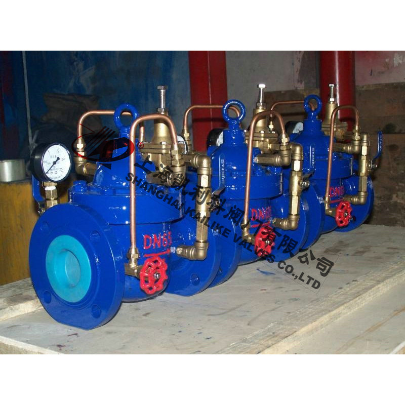 200X可调式稳压阀由主阀、导阀、针阀、球阀、微型过滤器和压力表组成水力控制接管系统。使用时,当调定出口压力后,能自动保持稳定出口压力。可调式稳压阀利用导阀自力控制,不需要其它装置和能源,保养简便,压力控制准确度高,受进口压力和流量影响小,减压稳压可靠。200X可调式稳压阀广泛用于高层建筑、生活区等供水管网系统及城市供水工程。
