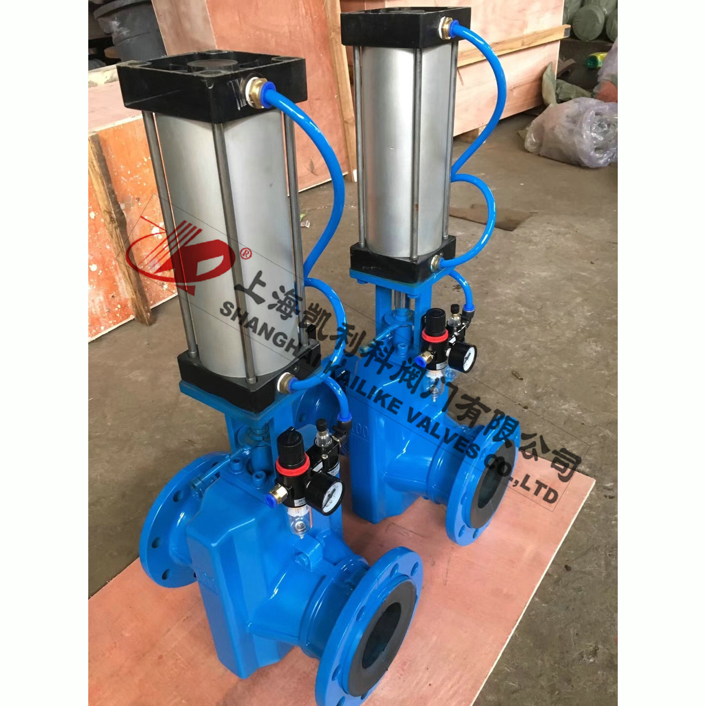 GJ6K41X气动管夹阀可为常开型、常闭型,又名气动夹管阀,气动胶管阀由上下铸铁、铝合金、不锈钢阀体,橡胶管套、大小阀杆闸板、上下导柱等零件组成。当顺转手轮时,使大小阀杆同时带动上下茬板、压缩管套、进行关闭,反之即行开启。这样,闸板在导柱之间上下往复完成阀门开闭工作,另因橡胶管套或承力小,所以在开闭时,操作人员旋转轮时只要感到适量抵触,均达到开闭极点。切勿尽力多人补助,禁用其他工具开闭。