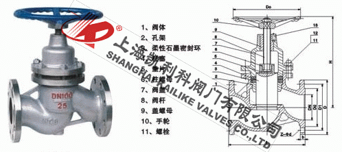 UJ41H不锈钢柱塞阀是由阀体、阀盖、阀杆,柱塞,导向、密封环、手轮等零件组成。当手轮旋转时,通过阀杆带动柱塞在导向套中上、下往复运动,使柱塞端部斜锥面与阀座锥面完成阀门的开启与关闭功能。