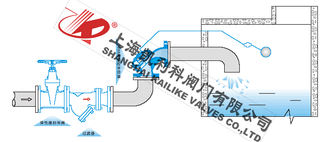 当水池或水箱内水位下降,浮球阀开启排水时,进水管内有压水将阀内活塞托起,密封面打开,阀门即开启供水。当水位上升到控制线时,浮球阀关闭.活塞下移将密封面钓闭,闭门停止供水。