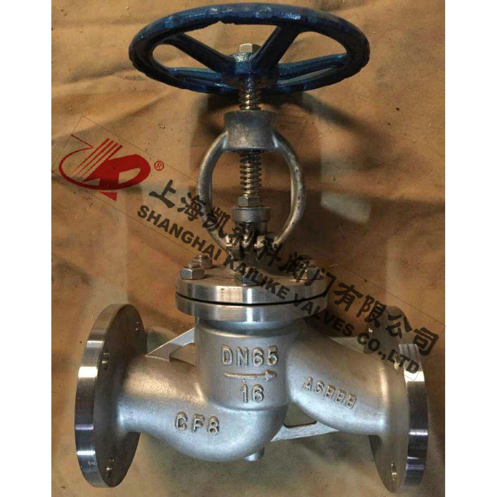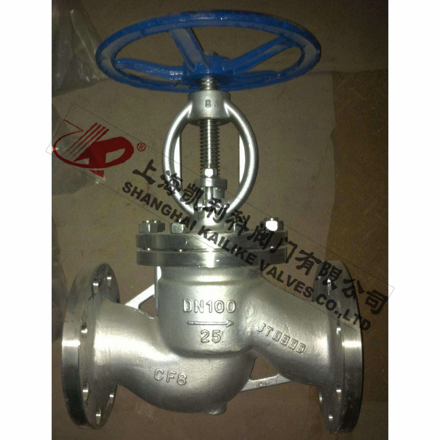 J41W不锈钢截止阀的启闭件是圆柱形的阀瓣,密封面呈平面或锥面,阀瓣沿流体的中心线作直线运动。国标截止阀只适用于全开和全关,一般不用来调节流量,定做时允许作调节和节流。