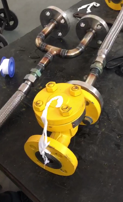 我们可以从图中看出这个氨用止回阀漏气漏得很严重,心塞,自己的产品怎么这么不管用,感觉找一下解决方案,图中发现了氨用止回阀是朝下的,不对劲啊,问题马上就看出来了,立即给客户打电话过去,氨用止回阀中部法兰应该朝上。